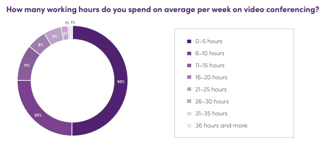 Mezi důsledky pandemie patří zvýšený význam a četnost videokonferencí. Polovina specialistů a manažerů uvádí, že online schůzkám věnují méně než 5 hodin týdně. 25 % z nich stráví 6 až 10 hodin týdně a 11 % dotázaných věnuje videokonferencím 11 až 15 hodin. Více než polovina dotázaných se domnívá, že počet virtuálních schůzek za týden je přiměřený, zatímco více než 20 % specialistů se domnívá, že těchto schůzek je příliš mnoho.