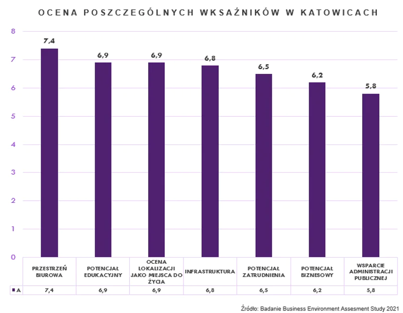 W trzeciej edycji badania BEAS, Katowice zajęły wysokie miejsce. Średnia ocena wynosi 6,7 punktu w 10-stopniowej skali. To plasuje aglomerację na trzecim miejscu (ex aequo z Krakowem) wśród innych, badanych polskich miast. Najwyższe oceny otrzymały aspekty takie jak przestrzeń biurowa (7,4 p), potencjał edukacyjny (6,9 p) i ocena lokalizacji jako miejsca do życia (6,9 p).