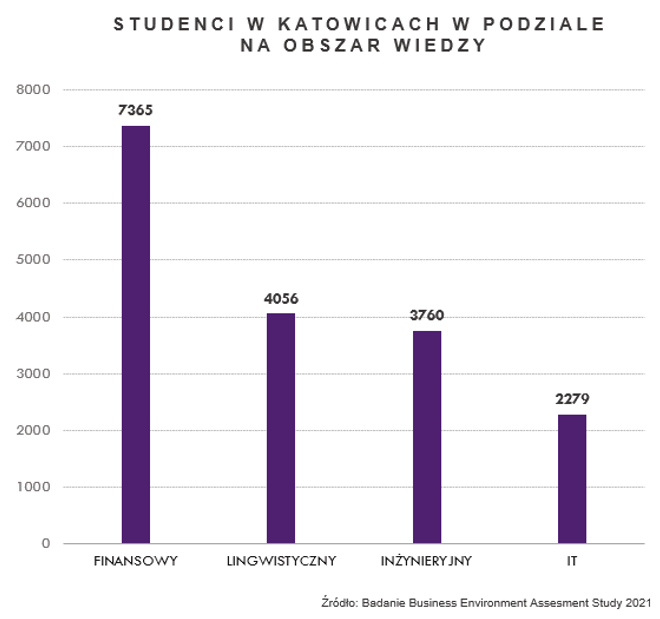 Jedenaście uczelni wyższych, a wśród nich największa państwowa uczelnia na Śląsku, gwarantują bogate zaplecze kompetencyjne. Katowice liczą sobie 51,2 tys. studentów. Najwięcej z nich specjalizuje się w obszarze finansów (7,4 tys.), potem w obszarze lingwistycznym (4,1 tys.) a następnie w inżynieryjnym (3,7 tys.). Kapitał ludzki został oceniony na 6,9 p w dziesięciostopniowej skali.