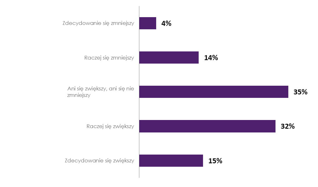 47% badanych uważa, że rozwój zastosowań sztucznej inteligencji zwiększy zapotrzebowanie na programistów, natomiast 35% uważa, że nie będzie to miało żadnego wpływu na popyt. Raport Światowego Forum Ekonomicznego potwierdza, że w Polsce programiści nadal będą pożądani.