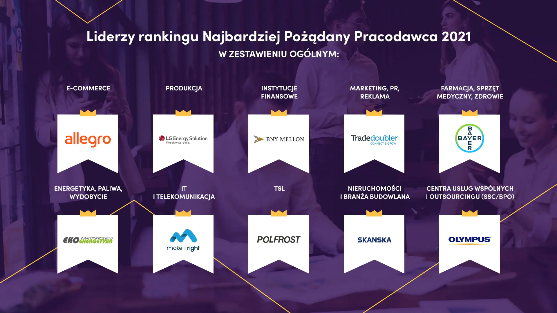 Tytuł Najbardziej Pożądanego Pracodawcy dodatkowo został przyznany w 10 kategoriach branżowych: finansach, IT, energetyce, farmaceutyce, FMCG, nieruchomościach, produkcji, marketingu, PR i reklamie oraz e-commerce.