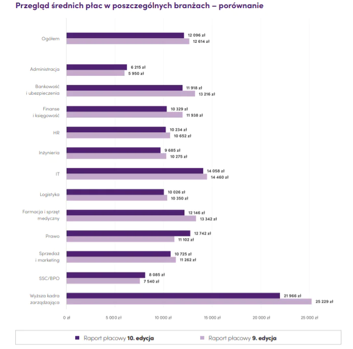 Raport płacowy Antal wskazuje, że średnie wynagrodzenie obecnie oferowane specjalistom i menedżerom wynosi 12 096 zł brutto miesięcznie co oznacza spadek o 4% w stosunku do roku poprzedniego.